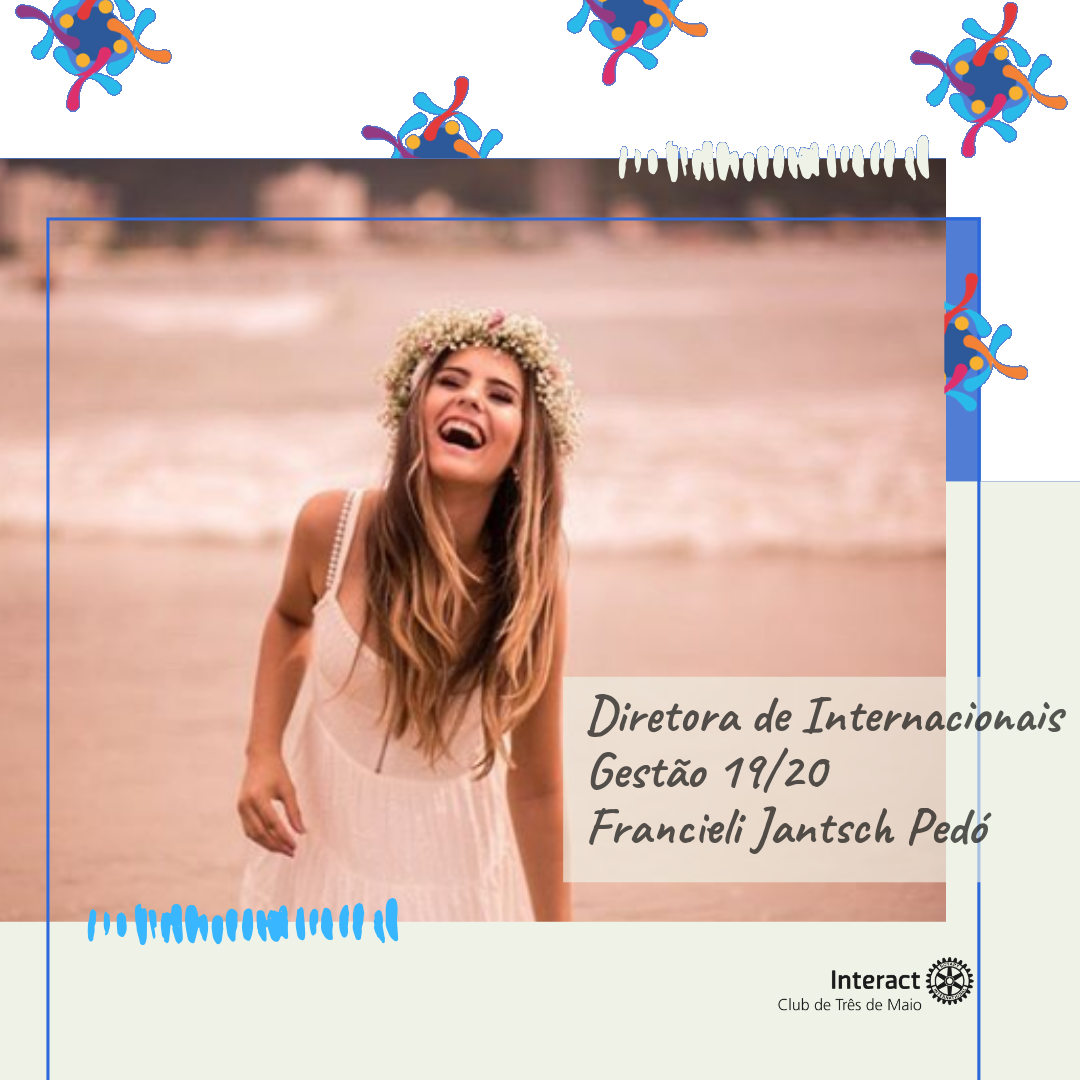 A companheira Francieli Jantsch Pedó assumiu o cargo de Diretora da Comissão de Internacionais do Interact Club Três de Maio na Gestão 2019-2020. Muito sucesso companheira!