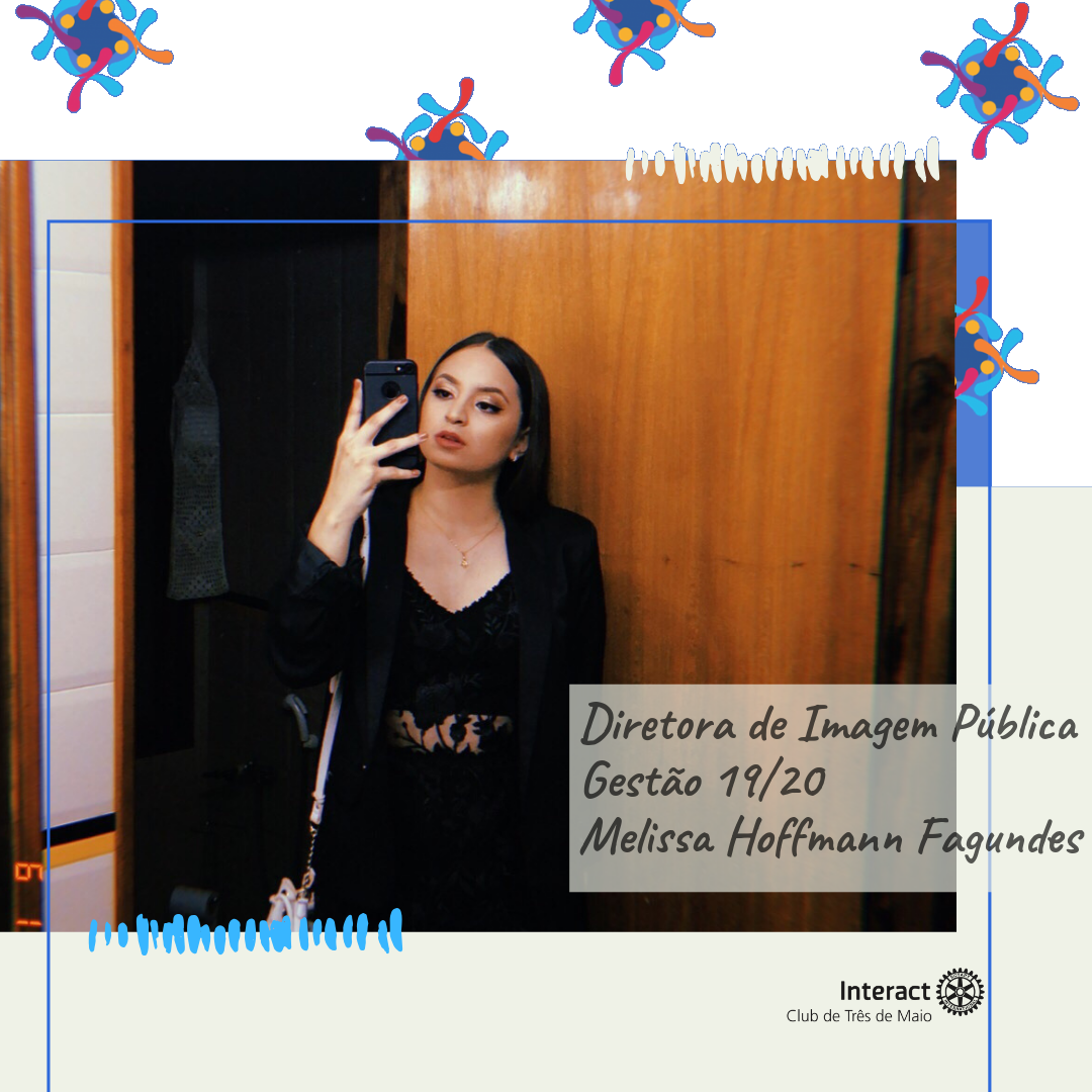 A companheira Melissa Hoffmann Fagundes assumiu o cargo de Diretora da Comissão de Imagem Pública do Interact Club Três de Maio na Gestão 2019-2020. Muito sucesso companheira!