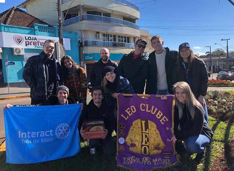 Na manhã de sábado (06/07). foi realizado o pedágio solidário para arreacadar fundos ao Jardel Zart, que teve sua casa vítima de um incêndio. Na ocasião estiveram presentes companheiros do Interact club em parceria com o Leo Club Três de Maio, foi um grande moviento de entidades que teve uma enorme mobilização da sociedade em prol do Jardel!!!