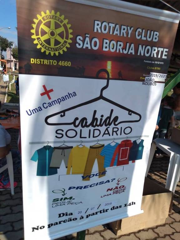 O Rotary Club São Borja Norte realizou no Parcão, o projeto Cabide Solidario. Distribuindo roupas e calçados as pessoas de baixa renda. Visando a dar melhor conforto para enfrentar o inverno.
