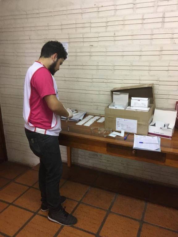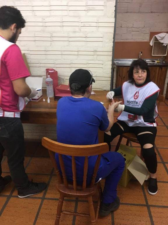 Nos dias 22 e 23 de julho, seguindo com a campanha Hepatite Zero, os companheiros Carolina Becker da Silva e Lucas Columbaro estiveram juntamente com a companheira Rosane, membro da Casa da Amizade, aplicando testes de Hepatite C em empresas de Cerro Largo.