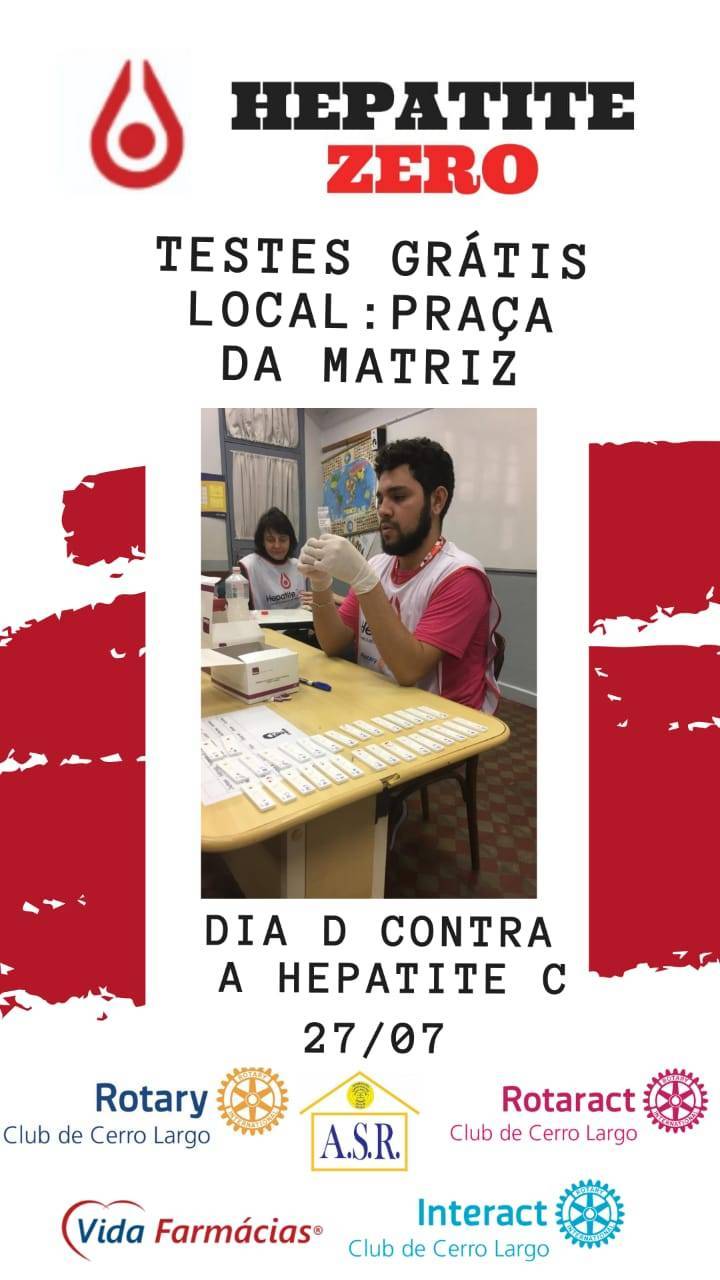 Sendo assim o Rotary Club de Cerro Largo conseguiu testes rápidos para detecção de hepatite C, e vai disponibilizá-los para a população de Cerro Largo e região. O dia D de combate a Hepatite será no dia 27/07/2019 e ocorrerá na praça da matriz durante manha e a tarde , desta forma o Clube convida a população a comparecer . #orotaryconectaomundo #distrito4660