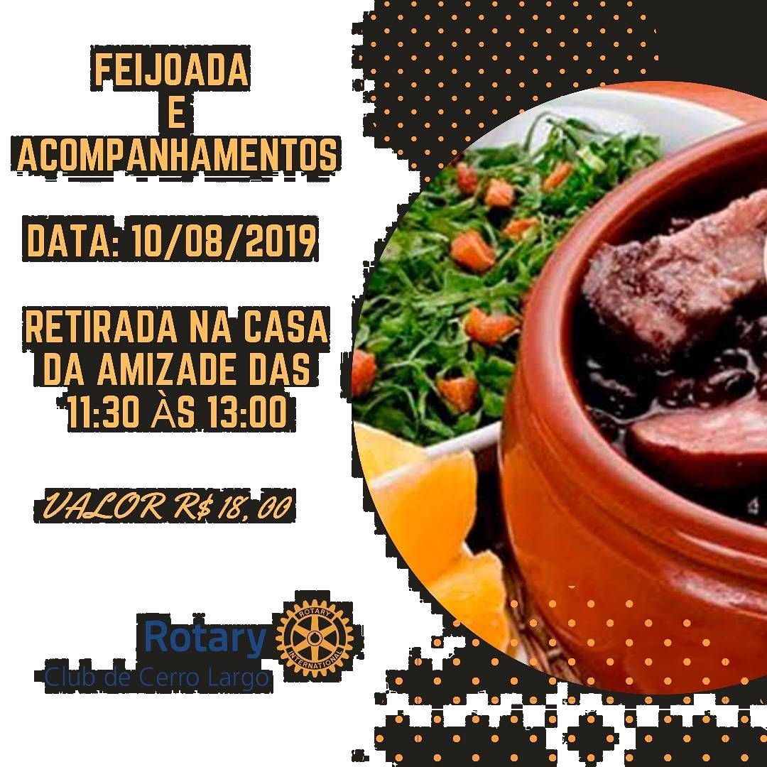 O Rotary Club de Cerro Largo realizará, no dia 10 de agosto, a terceira edição da sua tradicional feijoada. Na data mencionada, na Casa da Amizade, serão entregues as porções de feijoada, das 11h30min às 13h.