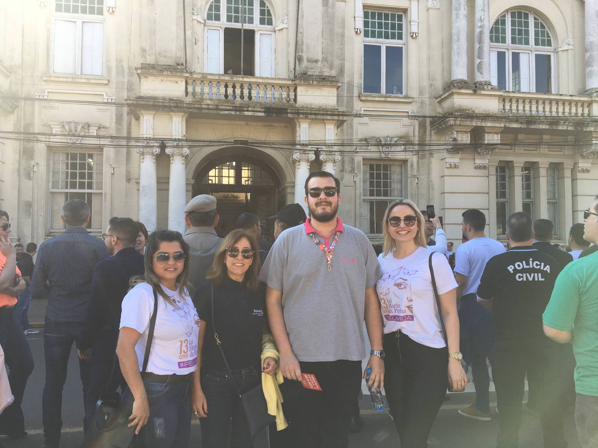 Na última quarta-feira (07), as companheiras do Rotary Club de Cruz Alta Ana Terra prestigiaram a “Caminhada pela vida” que marcou os 13 anos de existência da Lei Maria da Penha. A caminhada teve como objetivo mobilizar toda rede de proteção, defesa e atendimento às famílias que sofrem com a violência doméstica.