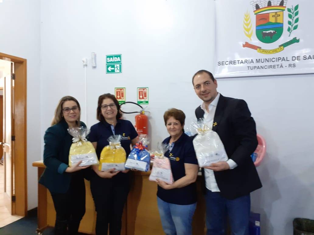 No dia 07 de agosto, foram doados ao Secretário de Saúde do Município 10 conjuntos, que foram confeccionados pelo Projeto Tecer e Aquecer, para serem sorteados entre as gestantes participantes do Agosto Dourado Aleitamento Materno.