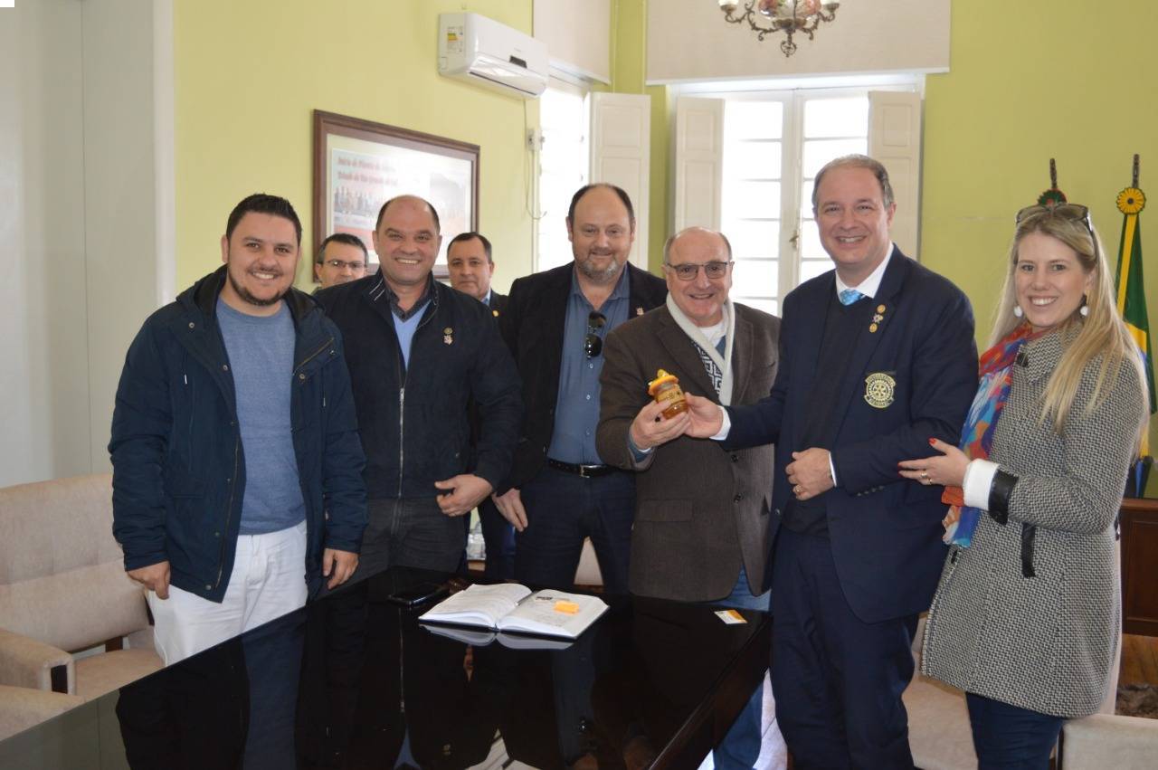 Em visita a Júlio de Castilhos, o governador distrital Roger Roberto e sua esposa Jaqueline Roberto, realizaram uma visita ao gabinete do prefeito municipal João Vestena, no qual esteve acompanhado de rotarianos e rotaractianos da cidade, junto aa visita se fez presente a vice-prefeita municipal Maira de Fatima Ferreira.