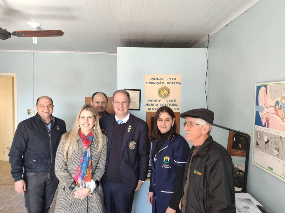 Durante a sua visita oficial a Júlio de Castilhos, o governador distrital Roger Roberto e sua esposa Jaqueline Roberto, acompanhados de rotarianos e rotaractianos visitaram a APAE de Júlio de Castilhos.