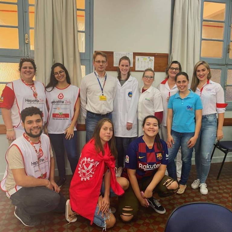O primeiro deles foi a divulgação da própria campanha, alertando a população sobre os riscos das hepatites, a importância da prevenção e, principalmente, do diagnóstico precoce. Foram feitas entrevistas nas três rádios de Cerro Largo, foi enviado material para os dois jornais e foram publicadas mensagens nas redes sociais do clube, no Facebook e no Instagram, páginas estas criadas recentemente com o intuito de ampliar a divulgação dessa campanha, assim como dos nossos demais projetos. Os companheiros de clube foram convidados a compartilhar as imagens de divulgação da campanha em seus grupos de Whatsapp.