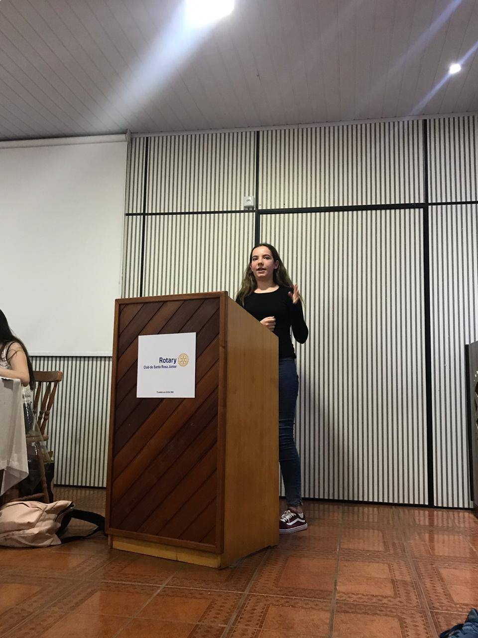 Na reunião do Dia do Convidado houve um momento em que cada um apresentou-se, falou um pouco sobre si e o que lhe motivou a participar do Interact. Na foto acima, temos a convidada Juliane.
