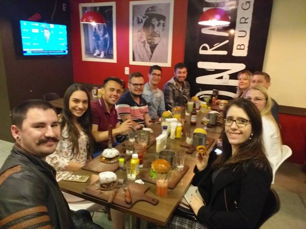 Após a reunião, os companheiros finalizaram da melhor forma possível: comendo! Reuniram-se da hamburgueria Don Ramon e permaneceram em companheirismo.