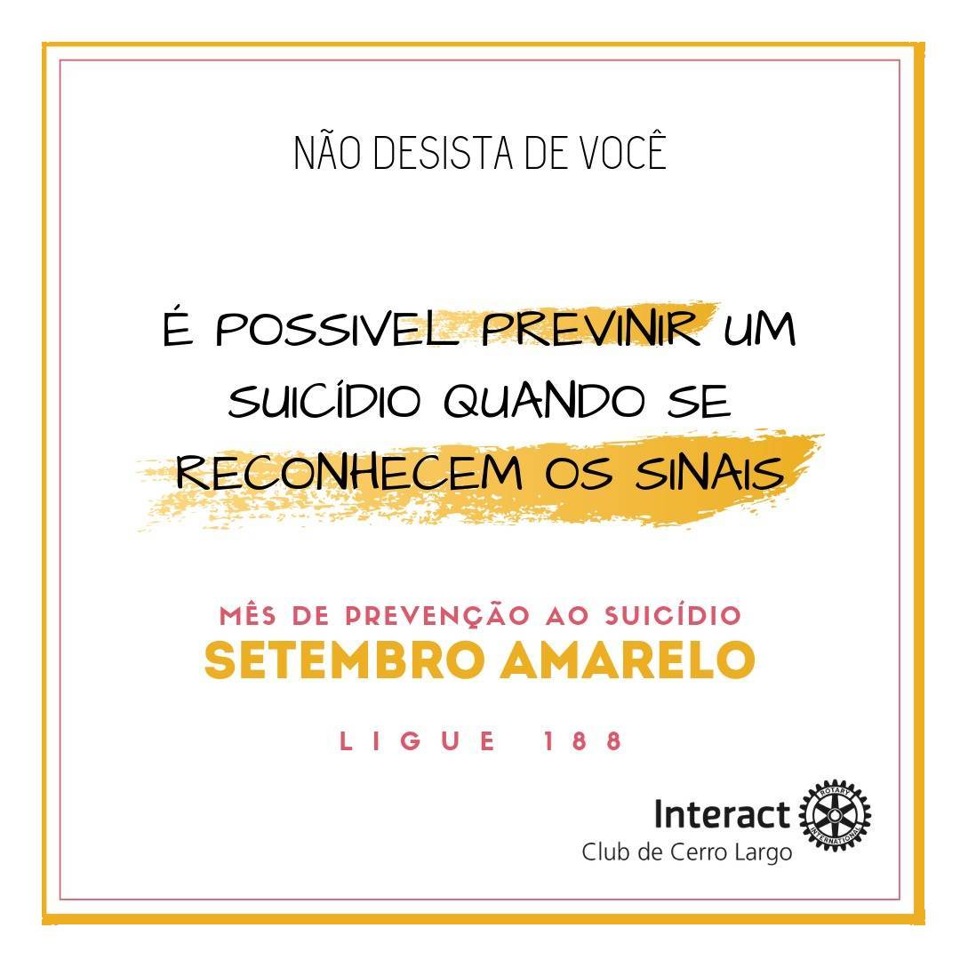 Esse mês (Setembro) é de cor amarela, mês também, da PREVENÇÃO AO SUÍCIDIO!  @ic.cerrolargo