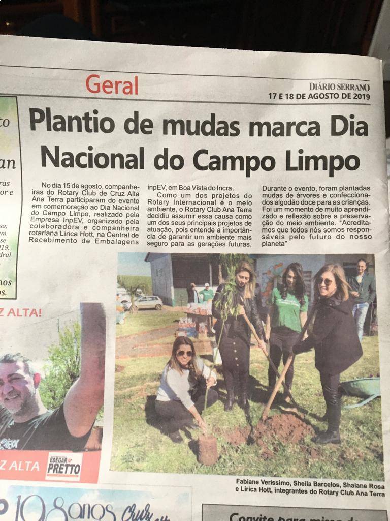 Ação social desenvolvida pelo Rotary Club de Cruz Alta Ana Terra foi pauta de matéria publicada pelo jornal Diário Serrano de Cruz Alta.
