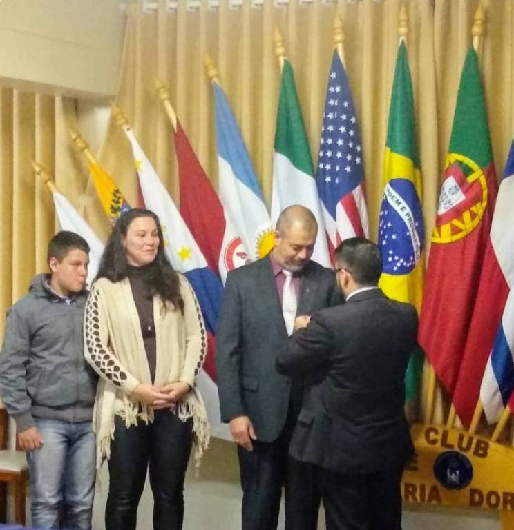 Agora o clube tem mais um associado. Nesta reunião, 12/09, foi dada posse ao novo companheiro, Renato da Silva Costa, afilhado do companheiro Jéferson Nunes, de quem recebeu o pin. Na solenidade além da esposa e filho, estavam presentes amigos do Renato, houve a participação do Governador Roger, que estava fazendo visita oficial ao clube.
