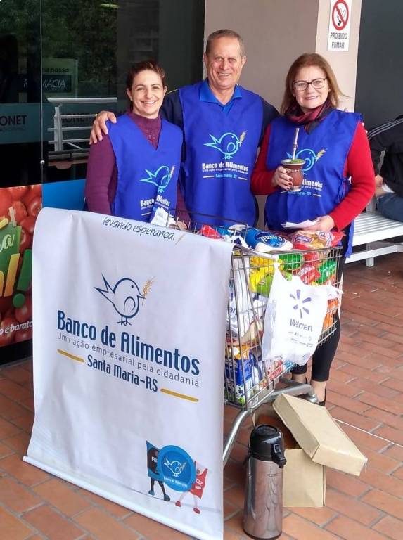 Hoje o Banco de Alimentos promoveu mais um Sábado Solidário nos Supermercados Big de Santa Maria, ação que tem o apoio e a participação dos Rotarys da cidade. Adão Fighera, nosso companheiro no Dores e presidente do Conselho de Administração do Banco, acompanhado da sua esposa e companheira Ceiça Fighera, presidente do RCSM Imembui,  além da Presidente Leda do RCSM Vento Norte participaram da arrecadação, enquanto o companheiro Mortari do RC de Santa Maria esteve no transporte dos alimentos arrecadados dos supermercados para o depósito.